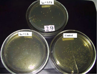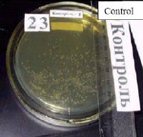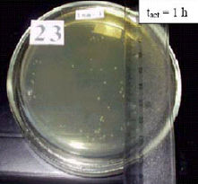 | (a) Kontrolle: Anzahl der Kolonien NC = 1,7x108 CFU/ml. Durchschnittlicher Durchmesser der gewachsenen Kolonien d = 1,1 mm. |
