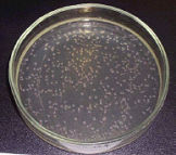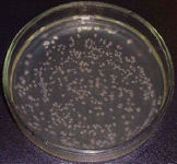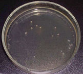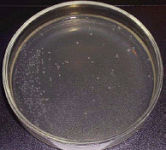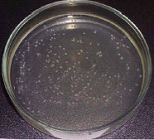 | (c) MRET‑aktiviert, tact = 60 Minuten: Anzahl der Kolonien N1,0 = 5,2x105 CFU/ml. Durchschnittlicher Durchmesser der gewachsenen Kolonien ist d = 1,5 mm. |
