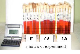 Unter Berücksichtigung, dass eine kleine Population von pathogenen Bakterien, wie E.coli, normalerweise in komplexen mikrobiellen Assoziationen im Darm des Körpers vorhanden ist, wurde der Test der metabolischen Aktivität von E.coli‑Bakterien in anaerober Umgebung durchgeführt. Anaerobe Umgebung simuliert die Umweltbedingungen ähnlich den Bedingungen im Darm von Menschen und Tieren. Die Untersuchung zeigte, dass die Reduktionsaktivität von E.coli‑Bakterien in anaerober Umgebung praktisch nicht veränderte (Abb. 9 und 10).