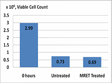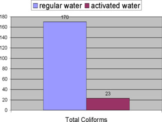 Tests, die bei C.A.I. Environmental Laboratory, Carlsbad, USA durchgeführt wurden, zeigten eine signifikante Reduktion der Gesamtmenge an Koliformen nach dem MRET‑Aktivierungsprozess. Im Regenwasser, das für 30 Minuten aktiviert wurde, verringerte sich die Menge an Gesamtkoliformen um 86% nach dem Wasseraktivierungsprozess. Dieser Test bestätigt, dass MRET Wasser als antibakterielles Mittel wirkt und einen Sterilisationseffekt bietet.