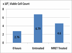 Für normale Zellen (PBMC) waren die Änderungen in den Zellzählungen ähnlich für unbehandeltes und MRET‑behandeltes Medium (Abb. 1). Somit beeinflusste die MRET‑Behandlung nicht das Wachstum normaler Zellen.