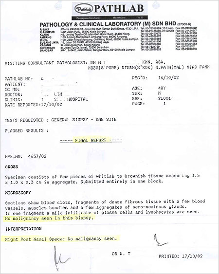 Ich lernte Dr. Smirnov im September 1998 kennen, während meiner Behandlung eines metastasierten Nasopharynxkarzinoms. Während zweier Chemotherapie-Zyklen (September/Oktober) trank ich mit dem Gerät aktiviertes Wasser, teils mit einem von ihm entwickelten Kräuterzusatz. Zusätzlich nahm ich Bäder in Wasser mit einer Flüssigkeit zu Entgiftungszwecken. Zu meiner großen Überraschung fielen meine Blutwerte nie auf die üblichen Tiefstwerte und erholten sich innerhalb 2–3 Tagen auf Vor-Chemo-Niveau (sonst 8 Tage bis 2 Wochen). Ende November setzte ich die klassische Krebstherapie ab und trank fortan ausschließlich das spezielle aktivierte Wasser. Anfang Januar zeigte ein CT eine kleine Schrumpfung eines Tumors in der linken Lunge; einen Monat später erneut Schrumpfung sowie eine deutliche Reduktion der malignen Masse im Lungenfell.