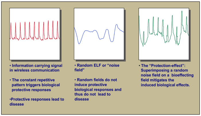 Учёные обнаружили, что искусственные частоты оказывают вредное, негативное воздействие на биологические клетки, в то время как природные — нет. Они назвали такое природное электромагнитное поле с хаотичными и смешанными частотами и формой сигнала «шумовым полем».